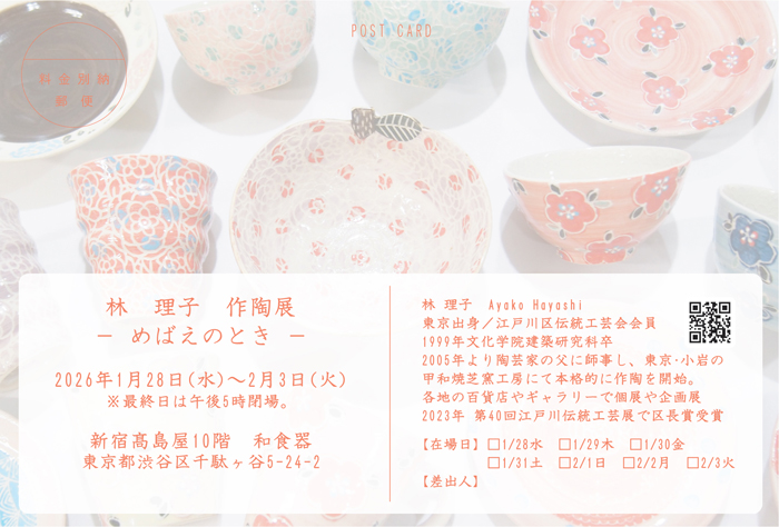 【個展:2026.1.28(水)~2.3(火)】@新宿髙島屋10階和食器】